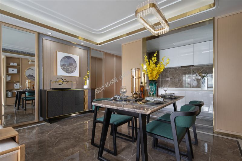 新中式风格123平米三室两厅餐厅家装效果图