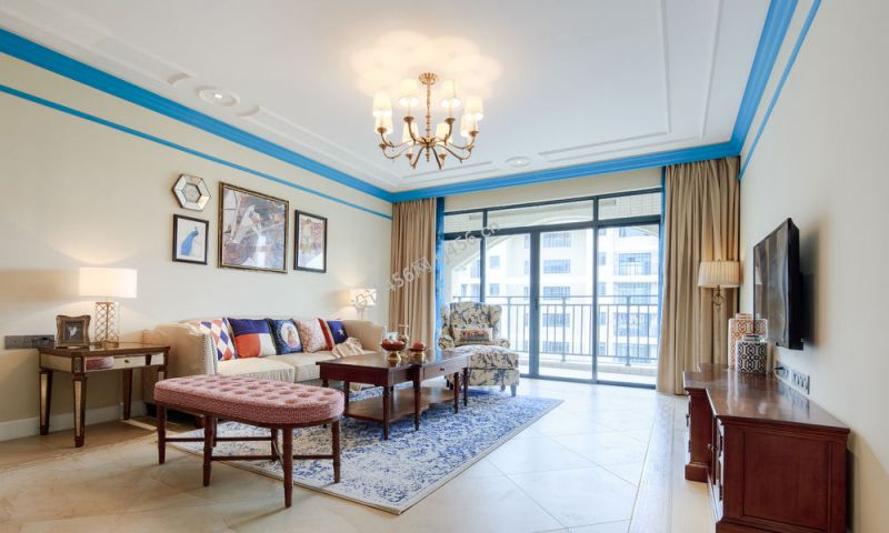 地中海风格114平米三室两厅客厅家装图片