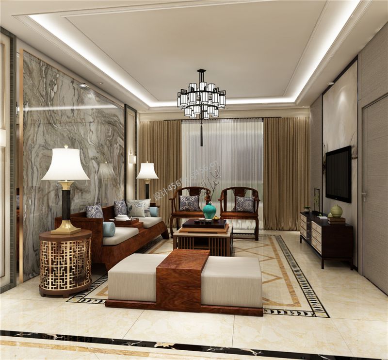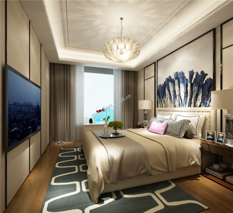 中式风格143平米四室两厅卧室吊灯装修效果图