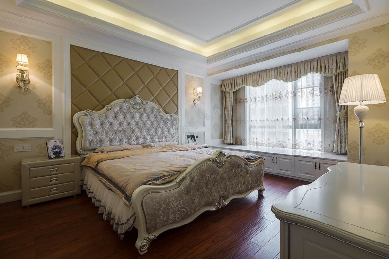 欧式风格145平米三室两厅卧室窗帘装修图片