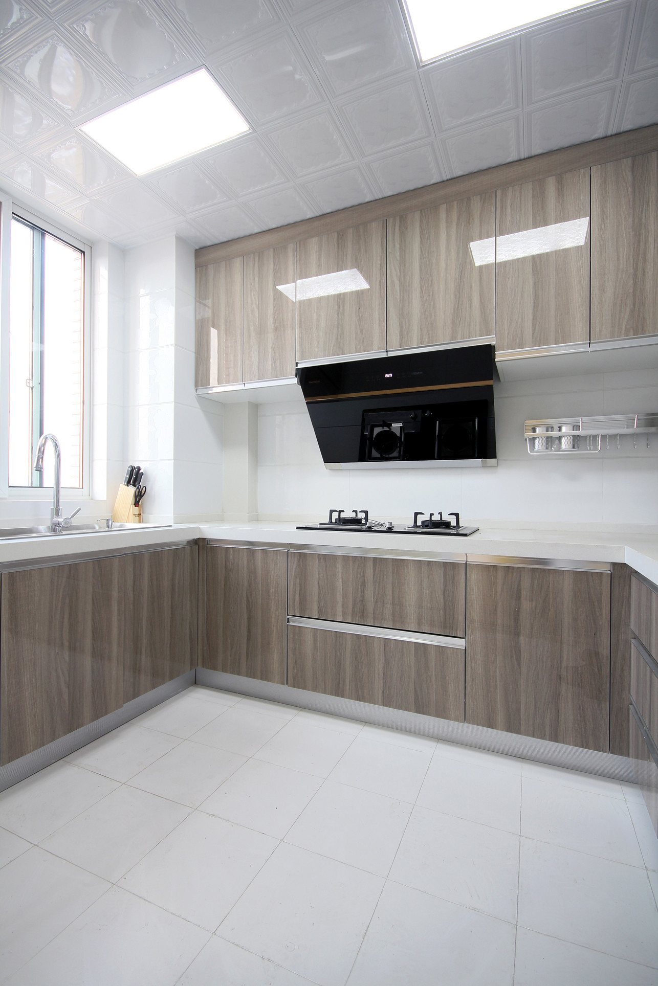 1、集成吊顶是由一种组合吊顶,采用HUV金属方板+电器的模式,按使用用途去分:照明模块、换气模块和分扣板模块等等。集成吊顶在安装上简单灵活,维修可分模块拆分修理,是当下厨房和卫生间上层空间设计的主流。