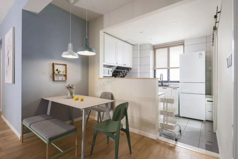 设计理念: 装修为什么要请设计师?平常的一个90㎡,最多设计成3室1厅,而且还会显得拥挤,今天的案例黄石万达90平米的房子,设计成了4室2厅,而且整体清新自然,不觉得非常拥挤。玄关的右手边有一个鞋柜,上面是蓝天白云的装饰画,鞋柜下面做了藏光处理,晚上回家很方便。餐厅和开放式的厨房用一面半高的矮墙隔开,因为餐厅的光线没有厨房的明亮,所以设计了吊灯,集中照明,厨房是点射灯,晚上天黑的时候,每个角落都能看见。厨房是狭长型,但是足够了,面积不大,但是该有的都有,整齐摆放,东西大都放在了收纳柜里。天空蓝的墙壁搭配白色的厨房,再加上木质的地板,有蓝天和大地的感觉,清新自然。客厅明亮宽敞,没有一点沉闷的感觉。淡淡的香芋色的布艺单人沙发,淡灰色的长条沙发,比较小清新。沙发背景墙上的装饰画都是蓝天白云,绿植不仅可以清新室内的空气,还能起到装饰的作用,还能起到分隔作用。主卧室的衣柜设计成了嵌入式的,没有占用多余的空间,看上去比较整洁干净。床头的小壁灯,为睡前的阅读,提供了很好的光照。次卧和主卧的风格是一样的,温柔,恬静。儿童房的墙面设计很值得借鉴和学习,香芋紫的护墙板,小孩子一般都喜欢在墙面上画画或者写字什么的,护墙板可以很好地保护原有的墙面。飘窗设计成了一个榻榻米的样式,可以随时在上面玩耍晒太阳。书房没有窗户,本来设计成杂物间,但业主喜欢阅读,平时工作需要,小孩子也需要这样的空间,所以设计成了书房。最后卫生间干湿分离做得非常好,洁净的台面,非常干净大方。 装修为什么要请设计师?平常的一个90㎡,最多设计成3室1厅,而且还会显得拥挤,今天的案例黄石万达90平米的房子,设计成了4室2厅,而且整体清新自然,不觉得非常拥挤。玄关的右手边有一个鞋柜,上面是蓝天白云的装饰画,鞋柜下面做了藏光处理,晚上回家很方便。餐厅和开放式的厨房用一面半高的矮墙隔开,因为餐厅的光线没有厨房的明亮,所以设计了吊灯,集中照明,厨房是点射灯,晚上天黑的时候,每个角落都能看见。厨房是狭长型,但是足够了,面积不大,但是该有的都有,整齐摆放,东西大都放在了收纳柜里。天空蓝的墙壁搭配白色的厨房,再加上木质的地板,有蓝天和大地的感觉,清新自然。客厅明亮宽敞,没有一点沉闷的感觉。淡淡的香芋色的布艺单人沙发,淡灰色的长条沙发,比较小清新。沙发背景墙上的装饰画都是蓝天白云,绿植不仅可以清新室内的空气,还能起到装饰的作用,还能起到分隔作用。主卧室的衣柜设计成了嵌入式的,没有占用多余的空间,看上去比较整洁干净。床头的小壁灯,为睡前的阅读,提供了很好的光照。次卧和主卧的风格是一样的,温柔,恬静。儿童房的墙面设计很值得借鉴和学习,香芋紫的护墙板,小孩子一般都喜欢在墙面上画画或者写字什么的,护墙板可以很好地保护原有的墙面。飘窗设计成了一个榻榻米的样式,可以随时在上面玩耍晒太阳。书房没有窗户,本来设计成杂物间,但业主喜欢阅读,平时工作需要,小孩子也需要这样的空间,所以设计成了书房。最后卫生间干湿分离做得非常好,洁净的台面,非常干净大方。