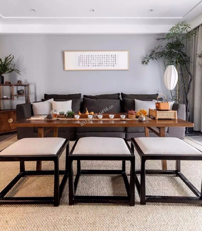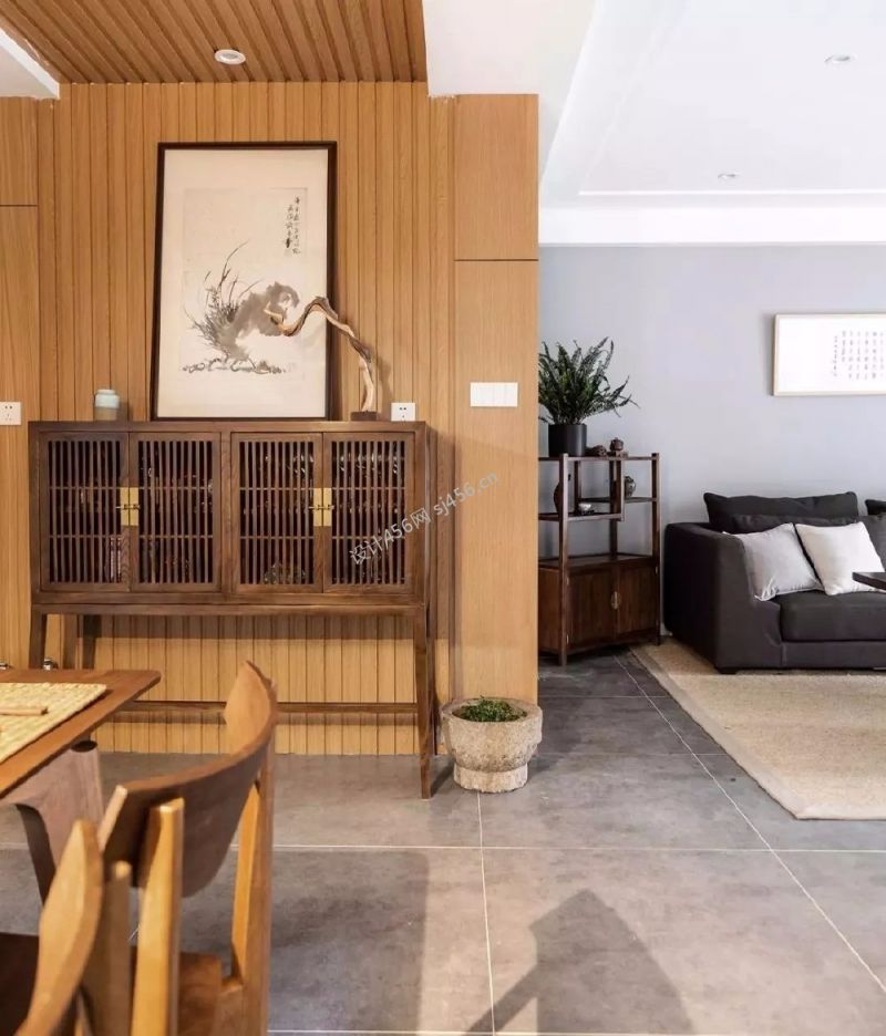 设计理念: 惠州本因坊120平方古典装修案例新中式混搭风格家居强调了自然美,装饰材料均取自天然材质,木的家具,乡村题材的装饰画,不需要精雕细琢,即使有些粗糙,都是自然的流露。客厅客厅,地面通铺水泥色地砖,极简顶面用点光源取代主灯,整体配色清简质朴深灰色布艺沙发搭配灰色背景墙,点缀书法字画,麻编地毯规划机能场域的同时增添中式氛围采用大茶桌取代传统茶几,提升整个空间利用率电视背景墙是北欧极简风格,兼具电视墙与储物柜体的功能,KD板的运用和其他空间相互呼应餐厅整体延续水泥灰搭配木色基调,原木餐桌椅与木质拉槽顶面呼应,业主预先购买的屏风成为点睛之笔餐厅拉槽顶面与餐厅背景相连,中式餐边柜实用又兼具韵味封闭式厨房厨房整体以简洁的灰白为基调,大面积无拉手柜体呈现现代北欧风格全封闭阳台阳台整体通铺木纹砖,一组吊柜与顶面齐平,满足洗衣区收纳卫生间客卫,铺贴白色石纹瓷砖,木质台盆柜增添自然纹理,淋浴区墙面设计壁龛方便置物老人房木色元素从地面一直延伸至床背景,整体崇尚简约卫生间主卫,整体通铺水泥砖,靠窗设置浴缸兼具淋浴机能 惠州本因坊120平方古典装修案例新中式混搭风格家居强调了自然美,装饰材料均取自天然材质,木的家具,乡村题材的装饰画,不需要精雕细琢,即使有些粗糙,都是自然的流露。客厅客厅,地面通铺水泥色地砖,极简顶面用点光源取代主灯,整体配色清简质朴深灰色布艺沙发搭配灰色背景墙,点缀书法字画,麻编地毯规划机能场域的同时增添中式氛围采用大茶桌取代传统茶几,提升整个空间利用率电视背景墙是北欧极简风格,兼具电视墙与储物柜体的功能,KD板的运用和其他空间相互呼应餐厅整体延续水泥灰搭配木色基调,原木餐桌椅与木质拉槽顶面呼应,业主预先购买的屏风成为点睛之笔餐厅拉槽顶面与餐厅背景相连,中式餐边柜实用又兼具韵味封闭式厨房厨房整体以简洁的灰白为基调,大面积无拉手柜体呈现现代北欧风格全封闭阳台阳台整体通铺木纹砖,一组吊柜与顶面齐平,满足洗衣区收纳卫生间客卫,铺贴白色石纹瓷砖,木质台盆柜增添自然纹理,淋浴区墙面设计壁龛方便置物老人房木色元素从地面一直延伸至床背景,整体崇尚简约卫生间主卫,整体通铺水泥砖,靠窗设置浴缸兼具淋浴机能