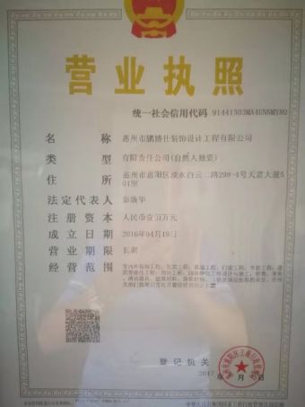 惠州鹏博仕装饰设计2009年始创于广东深圳,2013在广东惠州市正式注册成立,属建筑装修装饰工程专业承包贰级,建筑装饰工程设计专项甲级,惠州商标公司锐意进取,率先形成规模化服务,率先定位为"大公司"做"小家装",以完善的服务网络及规模优势让客户享受到超值服务,鹏博仕装饰设计不懈追求的目标是:为行业做榜样,打造中国人的家装设计品牌 公司所创造的"文化空间""智慧空间""可收藏空间"三大空间格局一直引领着中国家居文化的创新发展 公司格守"客户赞许,员工依恋,社会尊重"企业核心价值观,自觉承担社会责任,致力促进行业发展,以引导幸福生活和提人居品质为己任,积极开拓进取,不断追求完美。