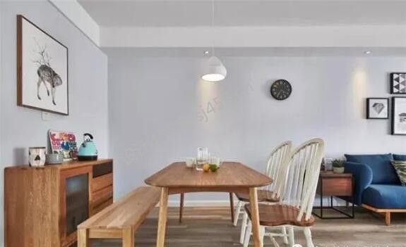 设计理念: 每个人家的样子都不同,可以期待的意义应该都是相同的,希望温馨,希望幸福,希望这个家里面藏着自己的小确幸,快来看看郡这个两居室装修吧。客厅是具有文艺气息的白色文化砖墙面,中甲嵌入电视,下方掏空的部分可以放遥控器什么的,非常方便,整体的简约自然,更具有北欧风格的意义。另一边是沙发,原木加上深蓝色是那么的合适,上边的不用样子的抱枕,装饰画也是配合的颜色,整体悠闲,很适合聊天喝茶,一派舒适。餐厅和客厅没有什么太明显的区分,却又一下能够分出来,墙面并不是纯白色的,但是这并不重要,原木组合的餐桌椅和斗柜才是重点,没有什么复杂的装饰品,更能体现出原木的张力和亲和力。主卧室可是舒适的做派,沿袭整体的设计,木质的地板,原木双人床,灰色床品,两幅北欧风格装饰画,还有两盏工业风的吊灯,色彩简单平淡,却是舒适无比,回归初心大抵如此。卧室比较大的原因,腾出了一个空间来当作衣帽间,中间用工作台兼梳妆台隔开,很是方便,拥有强大收纳机能的衣帽间,女主人没办法不爱吧。厨房地面是六边形瓷砖,白色和灰色的结合,充满了未知的活力,墙面是工字型摆放的白色瓷砖,结合了很多挂架,将所有的东西有一个好的收纳,缔造了整个空间的干净整洁。 每个人家的样子都不同,可以期待的意义应该都是相同的,希望温馨,希望幸福,希望这个家里面藏着自己的小确幸,快来看看郡这个两居室装修吧。客厅是具有文艺气息的白色文化砖墙面,中甲嵌入电视,下方掏空的部分可以放遥控器什么的,非常方便,整体的简约自然,更具有北欧风格的意义。另一边是沙发,原木加上深蓝色是那么的合适,上边的不用样子的抱枕,装饰画也是配合的颜色,整体悠闲,很适合聊天喝茶,一派舒适。餐厅和客厅没有什么太明显的区分,却又一下能够分出来,墙面并不是纯白色的,但是这并不重要,原木组合的餐桌椅和斗柜才是重点,没有什么复杂的装饰品,更能体现出原木的张力和亲和力。主卧室可是舒适的做派,沿袭整体的设计,木质的地板,原木双人床,灰色床品,两幅北欧风格装饰画,还有两盏工业风的吊灯,色彩简单平淡,却是舒适无比,回归初心大抵如此。卧室比较大的原因,腾出了一个空间来当作衣帽间,中间用工作台兼梳妆台隔开,很是方便,拥有强大收纳机能的衣帽间,女主人没办法不爱吧。厨房地面是六边形瓷砖,白色和灰色的结合,充满了未知的活力,墙面是工字型摆放的白色瓷砖,结合了很多挂架,将所有的东西有一个好的收纳,缔造了整个空间的干净整洁。