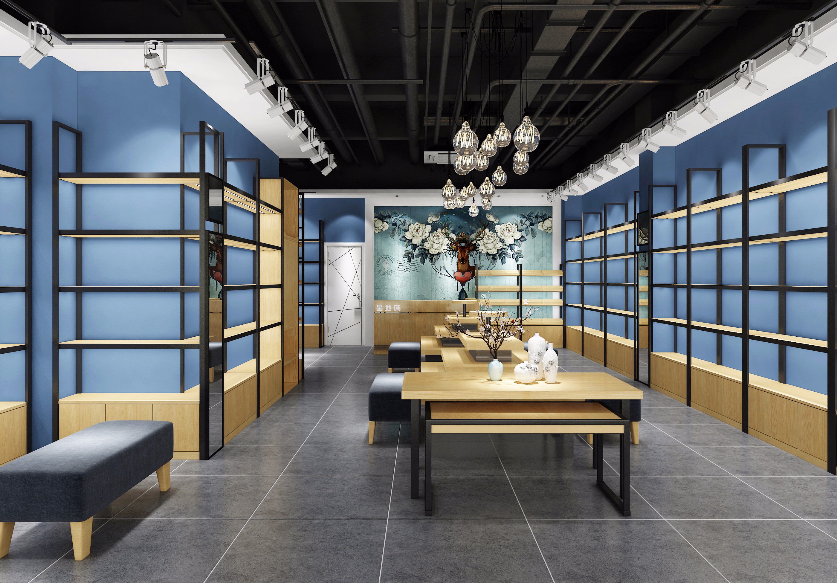 店内的格局如果设计的好,会让人更加的舒适,还能让人与产品的距离拉近,同时产品的分类区别也是格局中的重点之一,能促进人的购买力。