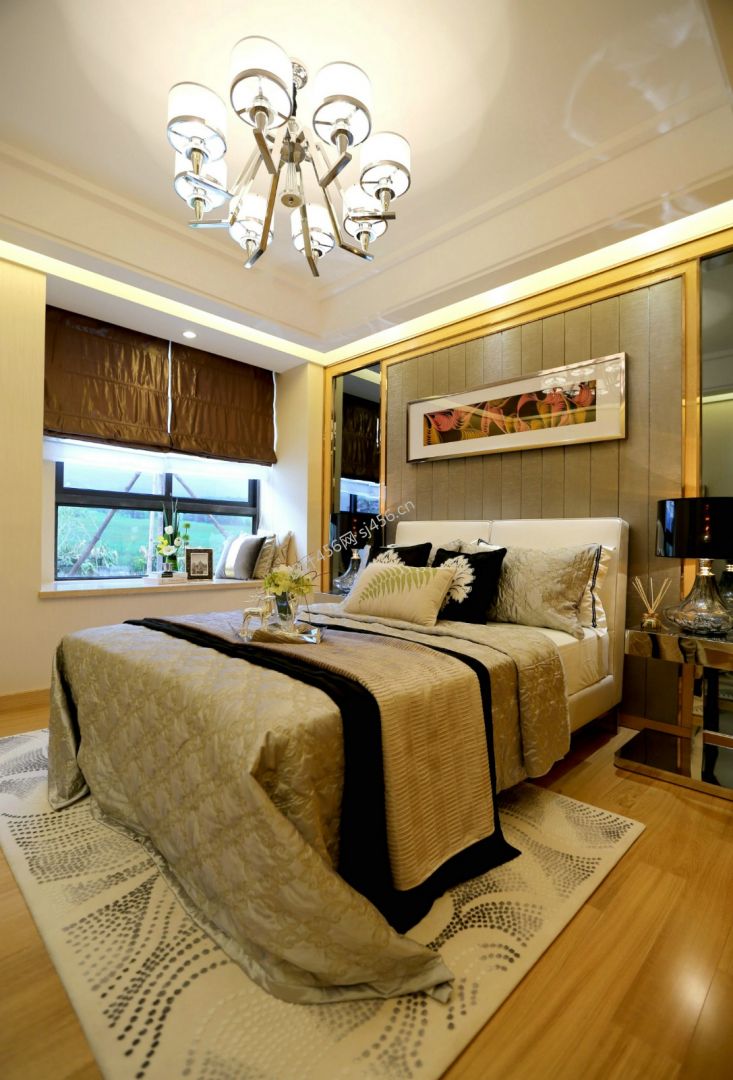现代轻奢风82平卧室地板效果图