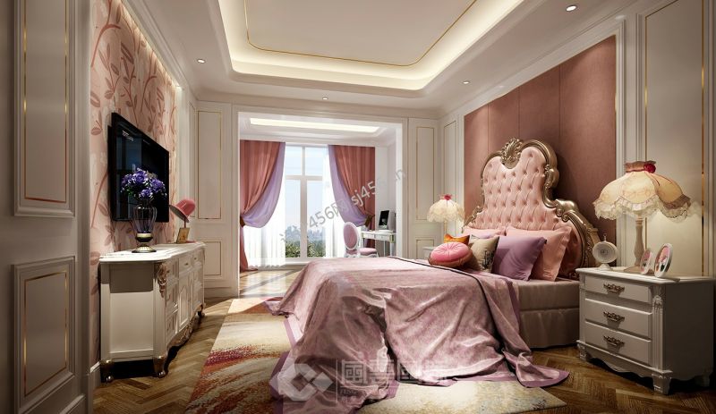 简欧风格300平米四居室女生卧室背景墙装修效果图
