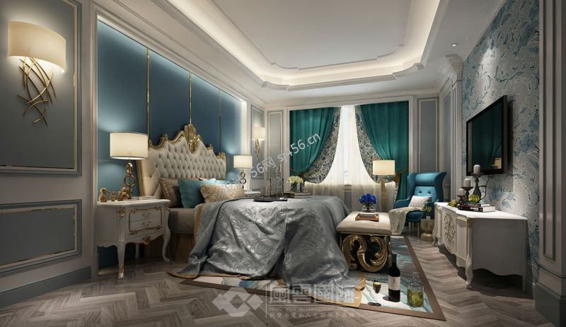 简欧风格300平米四居室卧室背景墙装修效果图