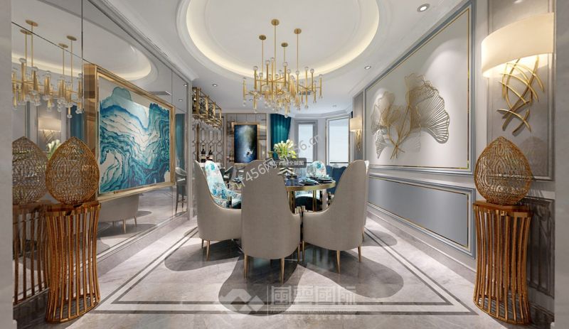简欧风格300平米四居室餐厅背景墙装修效果图