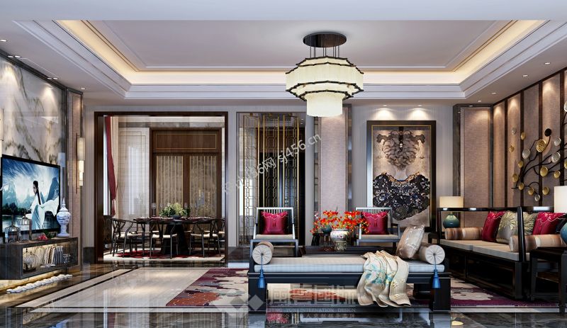 西溪山庄500㎡新中式别墅客厅装修效果图