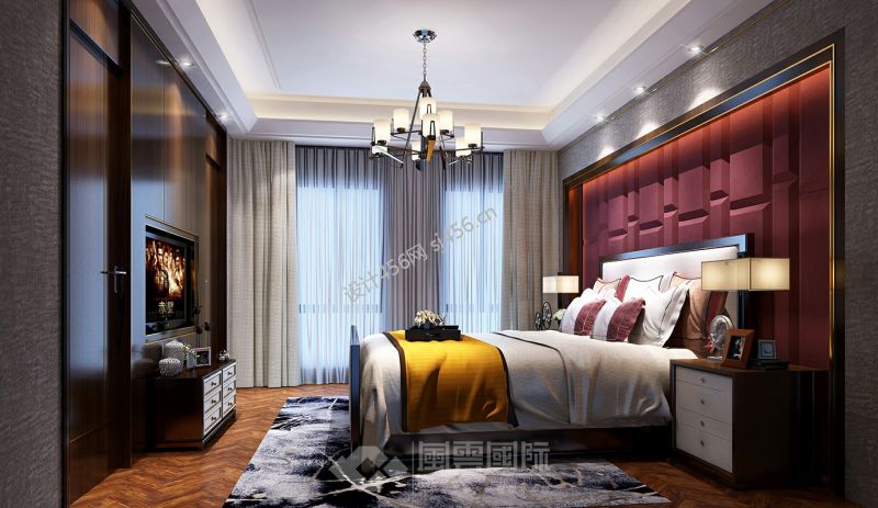 西溪山庄500㎡新中式别墅卧室装修效果图