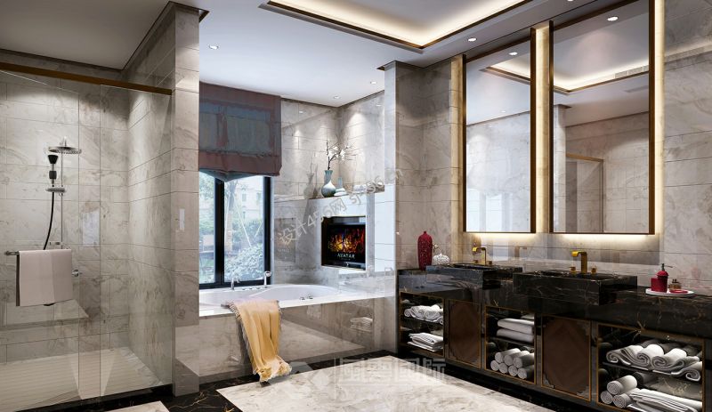 西溪山庄500㎡新中式别墅卫生间装修效果图