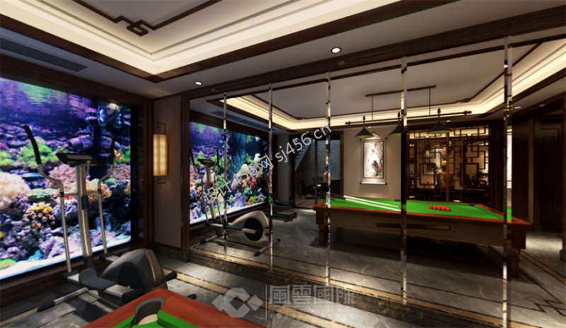 上林湖别墅500㎡新中式别墅地下台球室装修效果图