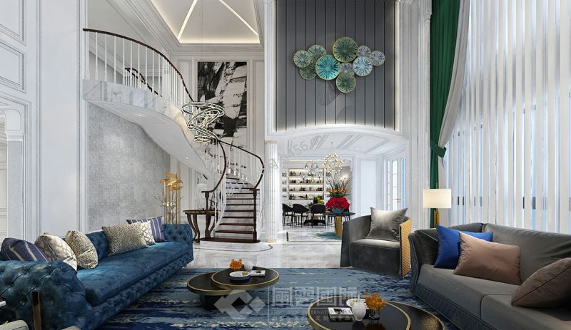 别墅440平美式风格客厅设计图