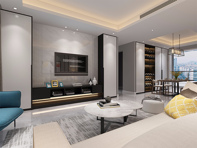 【设计说明】没有繁琐累赘的线条,鲜有璀璨奢华的元素,却通过不同色块之间的相互碰撞,干净利落的讲述了一个关于家的故事,给家以精致、温暖的生活气息。