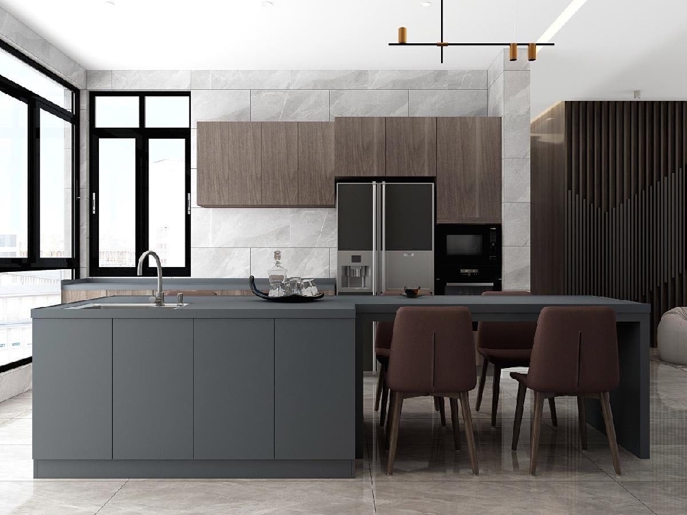 厨房的橱柜台面,一般划分为灶台、洗菜区、备餐区和成品摆放区,其中备餐区是黄金区域,要预留多一点位置,长度在60-80cm为宜。