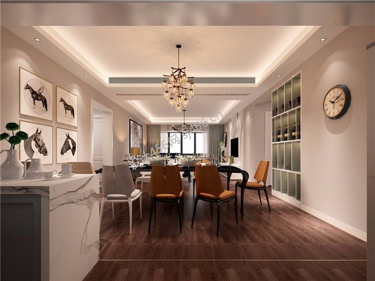 北欧极简三居150平餐厅吊顶装修实景图