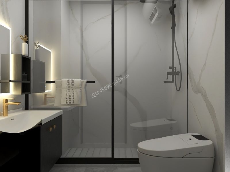 现代简约二居100平卫生间马桶装修实景图