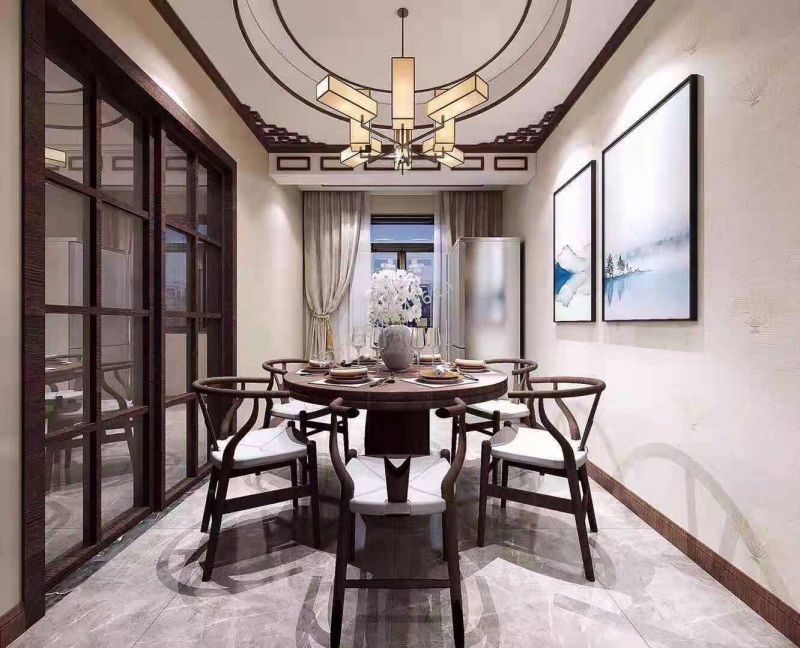 新中式风格112平方米三居餐厅墙面挂画装潢效果图