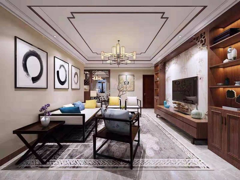 新中式风格112平方米三居客厅吊顶装潢效果图