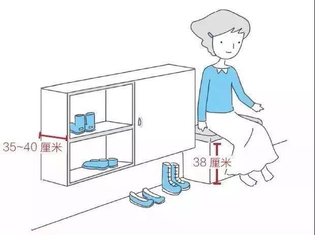 另外一点,为了方便我们穿鞋弯腰方便,我们的鞋凳高度应该是在38厘米这样,至于深度就看情况而定了,宽度则看玄关,一般椅子够大,这样可以方便更多的人进行换鞋。