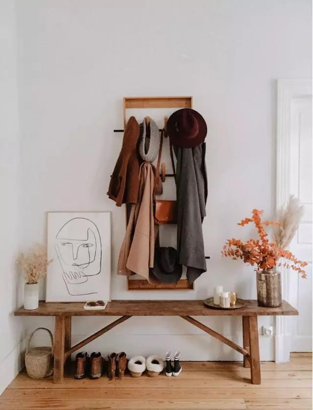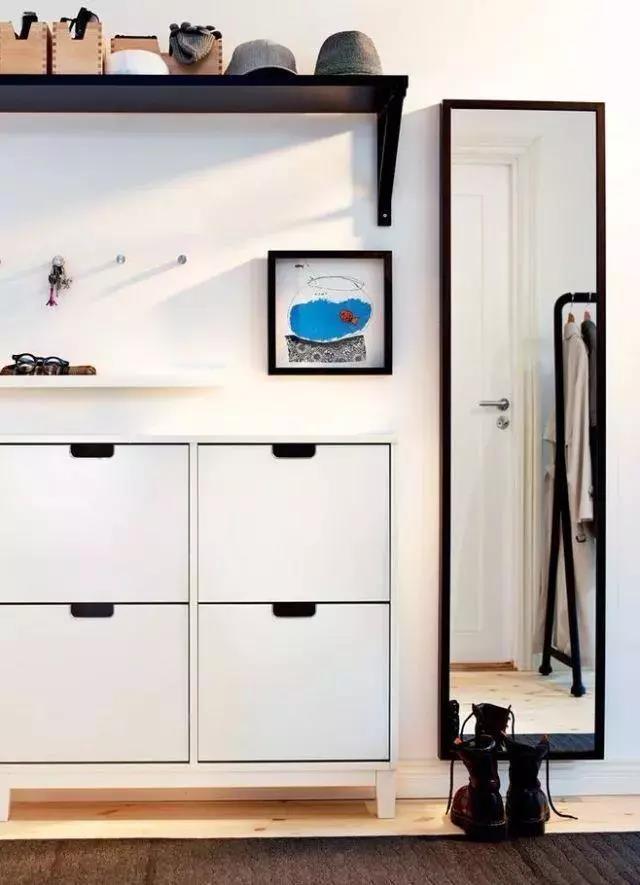 如果你想玄关有鞋柜,又想可以挂衣服,又想有穿衣镜,看起来不杂乱有规章又好看,那下面这张图片仅供参考,切记要用统一的颜色不要太花。