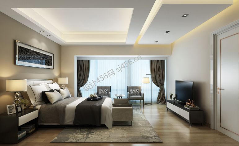海逸城邦花园190平米现代简约卧室隔断装修案例