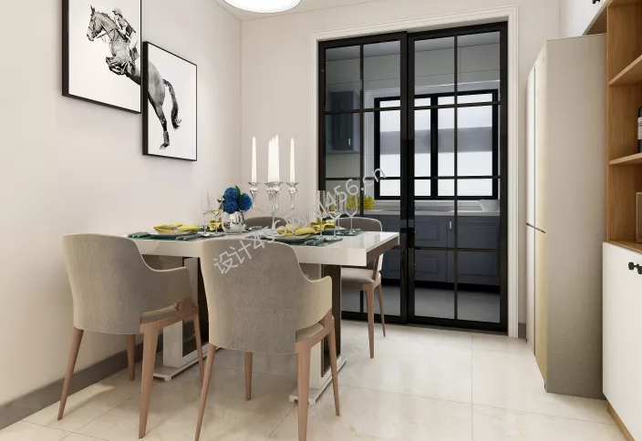 74平米现代简约风格餐厅厨房隔断门装饰图