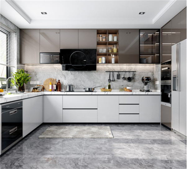 使用吊柜还可以利用上方的空间,将碗碟等重量相对较轻的物品摆放在上面,十分节省空间。