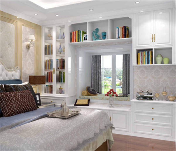 飘窗收纳有很多种,可以在飘窗左右墙体做两排敞开式的隔板,也可以做成一个储物柜式的飘窗,飘窗下做成大面积的收纳空间。