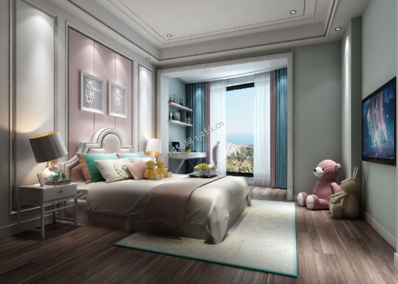 欧式三居室140平米卧室窗帘装修设计效果图