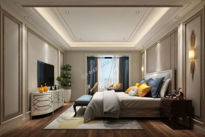 欧式三居室140平米卧室背景墙装修设计效果图