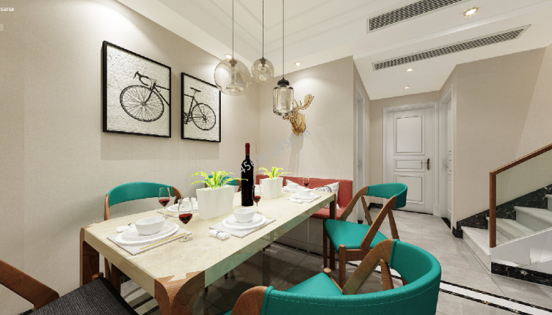 美式风格135平米餐厅餐桌装修设计效果图