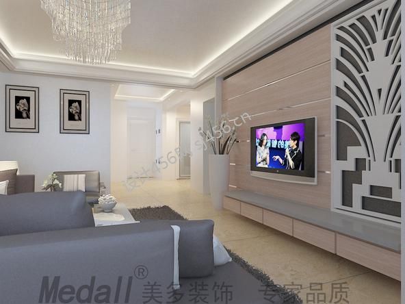 绿地·国际城118平米三居室现代简约风格电视背景墙装修效果图