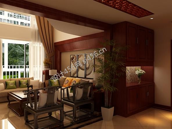 东信·星河湾260平米别墅中式风格吊顶装修效果图