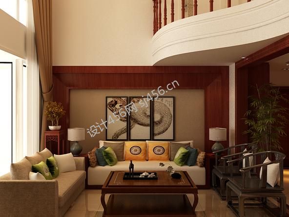 东信·星河湾260平米别墅中式风格沙发背景墙装修效果图