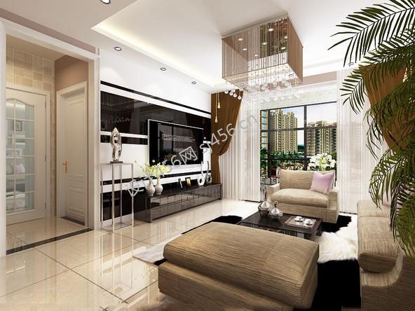运河佳园93平米两居室现代简约风格客厅装修效果图
