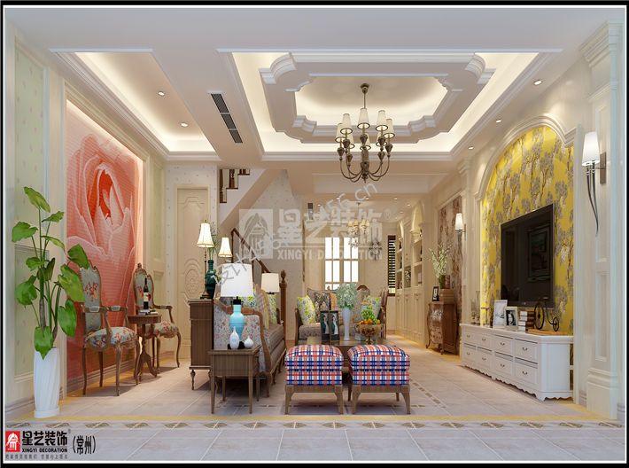龙湖香醍漫步美式200平别墅客厅装修案例