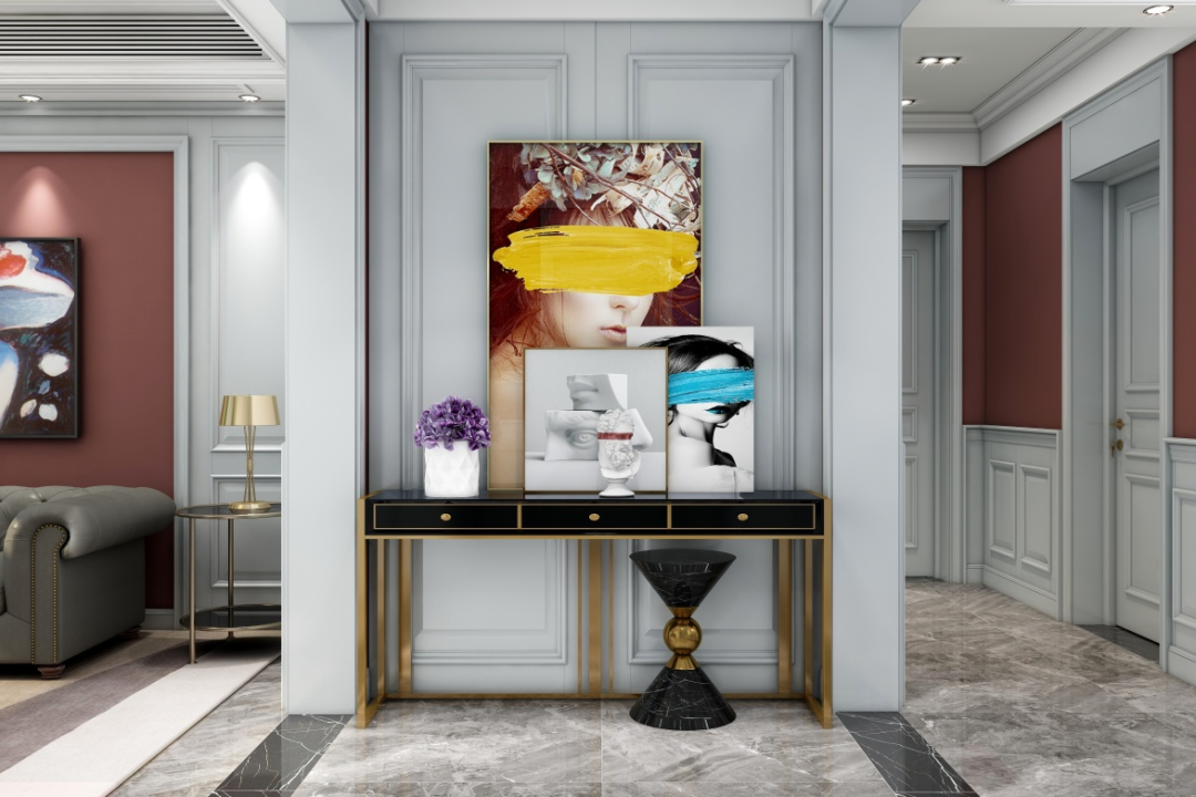 所以大家可以在走廊墙壁上做一些装饰,吸引视线转移,这样想要的舒适感都将实现。比如:在过道的尽头设计一幅装饰画或者用屏风来装饰隔断。