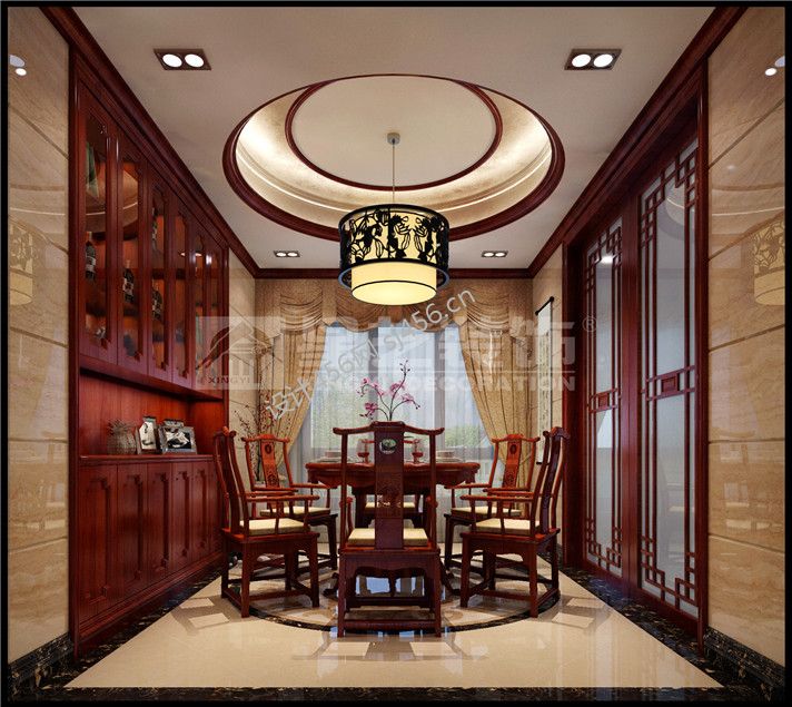 庐山国际276平米别墅新中式风格餐厅装修效果图