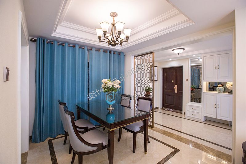 详情简约美式风格120平三居室餐厅隔断家装图片