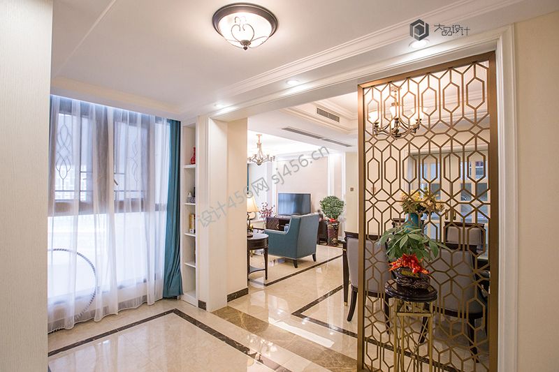 设计理念: 项目名称:晨曦家园项目地址:济南市历城区项目户型:89平方两室一厅项目风格:简约美式风格设计公司:山东大品装饰设计有限公司设计理念:说到美式,自然少不了复古风的棕色皮沙发,棕色实木茶几。在偏暖色调的灯光烘托下,整个客厅空间呈现舒适休闲的温馨氛围。玄关:采用金属材质镂空隔断,使室内空间若隐若现,搭配波打线及白色的窗纱,意境十足。客厅:米黄色的墙面搭配复古风格的电视柜和茶几,还有带铆钉的皮质沙发,均呈现出弄弄的美式风格氛围。窗帘和花瓶的孔雀蓝色十分抢眼,与暗色家具形成鲜明对比,产生的视觉碰撞很棒。餐厅:餐厅的金属屏风成为一大亮点,既能起到区域划分的功能,也让整个空间的大气格调提升了几分。主卧:主卧依旧延续了客厅的装饰手法,大量使用美式元素。整个主卧空间给人感觉洋气且沉稳。大品装饰的案例欣赏完了,是不是很喜欢呢?马上预约专业的资深设计师吧! 项目名称:晨曦家园项目地址:济南市历城区项目户型:89平方两室一厅项目风格:简约美式风格设计公司:山东大品装饰设计有限公司设计理念:说到美式,自然少不了复古风的棕色皮沙发,棕色实木茶几。在偏暖色调的灯光烘托下,整个客厅空间呈现舒适休闲的温馨氛围。玄关:采用金属材质镂空隔断,使室内空间若隐若现,搭配波打线及白色的窗纱,意境十足。客厅:米黄色的墙面搭配复古风格的电视柜和茶几,还有带铆钉的皮质沙发,均呈现出弄弄的美式风格氛围。窗帘和花瓶的孔雀蓝色十分抢眼,与暗色家具形成鲜明对比,产生的视觉碰撞很棒。餐厅:餐厅的金属屏风成为一大亮点,既能起到区域划分的功能,也让整个空间的大气格调提升了几分。主卧:主卧依旧延续了客厅的装饰手法,大量使用美式元素。整个主卧空间给人感觉洋气且沉稳。大品装饰的案例欣赏完了,是不是很喜欢呢?马上预约专业的资深设计师吧!