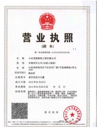 山东菩提装饰工程有限公司成立于2009年,公司拥有一支高素质专业的设计精英团队及其独特创新的设计理念。致力专业化设计、制图、施工、材料、展览展示于一体的优良服务,成就众商家享受高品质办公空间的梦想… 公司坚持“以人为本”的管理理念,公司团队秉承“诚信、专业、创新”为核心,始终以客户需求为己任 ,以新颖独特的思路,对空间的准确领悟、丰富的文化内涵及合理的专业手法,深得业界肯定并取得骄人的良好口碑,被客户誉为:“装饰界的黑马”! “至诚至信,稳健发展”是我们长久的承诺和拓展业务的宗旨。 设计本着“人性的、自由的、前沿的、”理念,预算合理、施工精良,真诚为每一位顾客,量身定制全新、优雅、舒适的办公、文化空间。 公司在办公空间,餐饮酒店空间,商务会所等工装领域有着独特的设计理念,丰富的施工经验,追求个性化设计,个性化空间,达到气质内涵与空间的完好结合。成为国内业界主流的风尚和座标,引导行业的发展潮流。 自公司成立以来,全体员工一直秉承“以质量求生存,以信誉求发展”的经营理念,始终坚持以客户的需求和满意为核心,以“诚信”为宗旨,不断的用优良、精美、具有创造力的空间装饰产品为客户提供更大的价值回报。