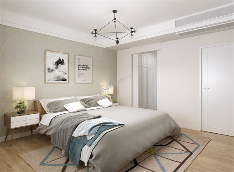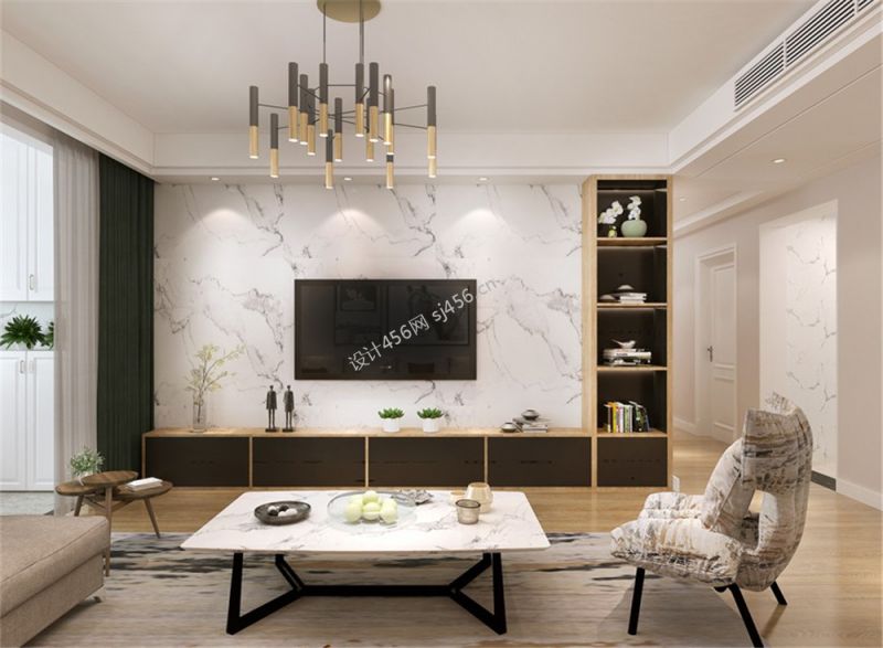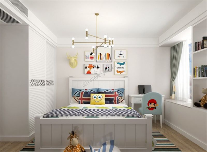 设计理念: 设计师希望通过设计这样一间充满暖阳与静思的房子,为业主营造一种怡然从容的生活方式。在这里,清晨第一缕阳光将沉睡的人们唤醒,睁开惺忪的睡眼,在阳光里轻轻柔柔,迎接一天的开始。入户玄关空间充分利用,右侧衣帽柜设计兼鞋柜与挂衣柜结合,另一侧与餐边柜相连,整体感强,满足多功能收纳的情况下,增加其美观性。餐厅墙面淡雅漆面配以极简黑色边框,增加墙面立体层次效果,桌椅用亮色搭配,造型简洁省空间,留出足够的空间通行。电视背景墙用大理石材质搭配木质柜体,既美观大方又实用双结合,与整体格调一致。客厅与餐厅南北通透,沙发配以舒适柔软的布艺材质,局部亮色作以点缀,增加空间层次感。儿童房设计利用后期的软装配饰搭配营造出简洁大方又不失童趣的空间。主卧室一侧是衣帽间、卫生间,卫生间与主卧室之间增加衣帽间区域,满足卧室收纳,弱化卫生间对主卧室的影响。生活或许是一首诗,具有深情的平平仄仄;生活或许是一首歌,具有那么多优美的旋律;生活或许是一幅画,五彩斑斓充满希望。在这里,生活是一种有情趣的生活姿态。 设计师希望通过设计这样一间充满暖阳与静思的房子,为业主营造一种怡然从容的生活方式。在这里,清晨第一缕阳光将沉睡的人们唤醒,睁开惺忪的睡眼,在阳光里轻轻柔柔,迎接一天的开始。入户玄关空间充分利用,右侧衣帽柜设计兼鞋柜与挂衣柜结合,另一侧与餐边柜相连,整体感强,满足多功能收纳的情况下,增加其美观性。餐厅墙面淡雅漆面配以极简黑色边框,增加墙面立体层次效果,桌椅用亮色搭配,造型简洁省空间,留出足够的空间通行。电视背景墙用大理石材质搭配木质柜体,既美观大方又实用双结合,与整体格调一致。客厅与餐厅南北通透,沙发配以舒适柔软的布艺材质,局部亮色作以点缀,增加空间层次感。儿童房设计利用后期的软装配饰搭配营造出简洁大方又不失童趣的空间。主卧室一侧是衣帽间、卫生间,卫生间与主卧室之间增加衣帽间区域,满足卧室收纳,弱化卫生间对主卧室的影响。生活或许是一首诗,具有深情的平平仄仄;生活或许是一首歌,具有那么多优美的旋律;生活或许是一幅画,五彩斑斓充满希望。在这里,生活是一种有情趣的生活姿态。