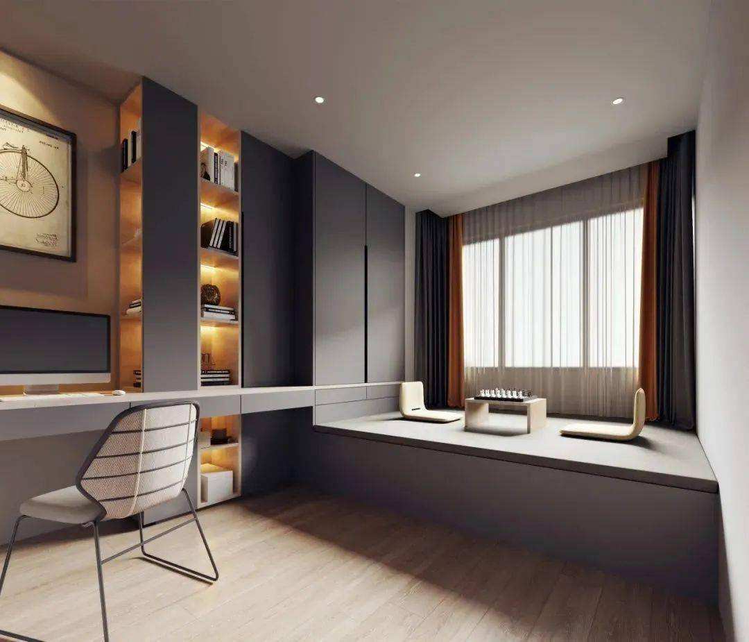 在飘窗窗台下设计柜子,也是一种常见的装饰手法。小小的飘窗柜,代替了窗台,不仅形成了一个小小的休闲放松区,更扩大了家的“容量”。