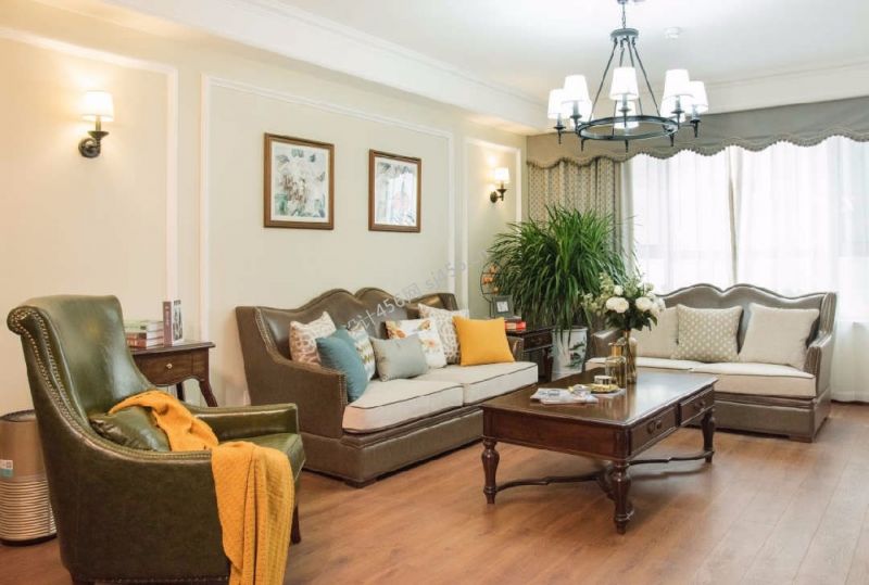 三居126平美式风格餐厅餐边柜设计图欣赏