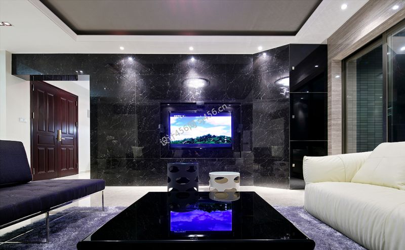 现代简约风格170平米客厅大理石电视背景墙装修图片大全