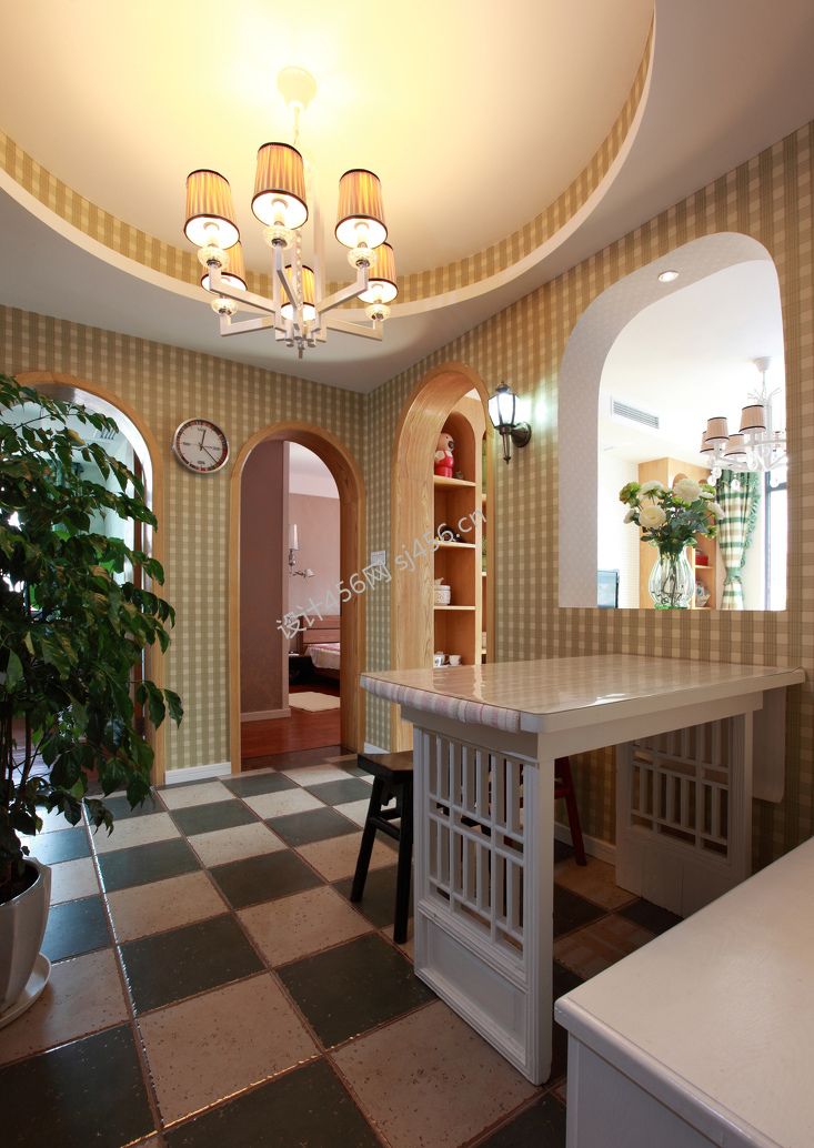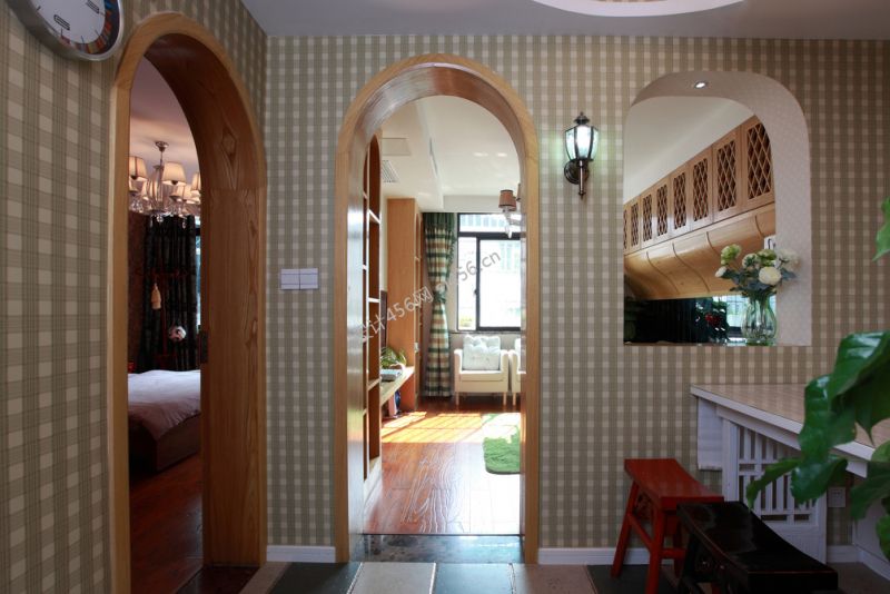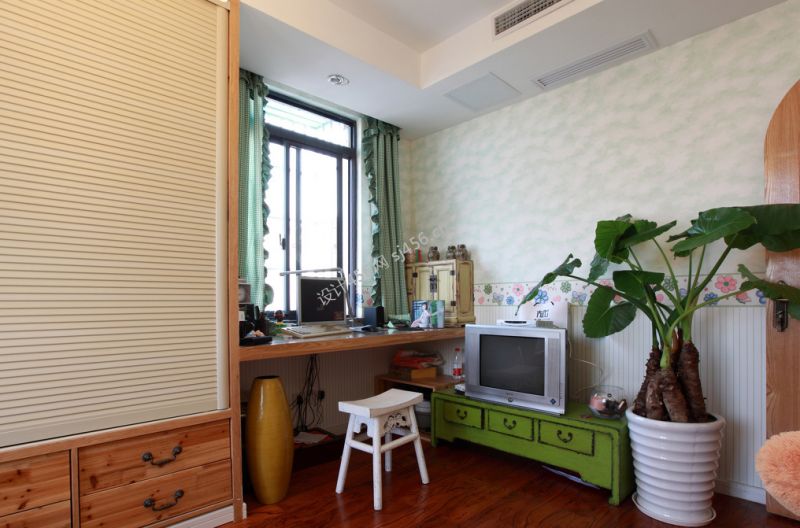 设计理念: 没有高大上的璀璨,抛开世俗的浮华,挽起心爱的她,漫步此小小红绿森林,丝丝沁香拂面,就让那些疲惫烦乱抛之云外吧,用心便收获一份甜蜜与安宁。本案追求清新自然的风格,用仿古砖、木饰面、壁纸、复古地板自成一派清新森林风。小小蜗居户型不大,储物便成了设计重点之一。餐厅内漂亮的卡座,既可以当做餐椅又可用来收纳鞋物和强弱电箱;沙发顶上做了弧形储存柜;利用电视背景的搁架放置书籍和装饰品;次卧室配以榻榻米衣柜,四面做抽屉与翻板,储藏功能可谓发挥到淋漓尽致。砖混结构的墙体基本不能做改动,因此原本两房变作多房的想法只得放弃,对于设计师来说亦是无奈。 没有高大上的璀璨,抛开世俗的浮华,挽起心爱的她,漫步此小小红绿森林,丝丝沁香拂面,就让那些疲惫烦乱抛之云外吧,用心便收获一份甜蜜与安宁。本案追求清新自然的风格,用仿古砖、木饰面、壁纸、复古地板自成一派清新森林风。小小蜗居户型不大,储物便成了设计重点之一。餐厅内漂亮的卡座,既可以当做餐椅又可用来收纳鞋物和强弱电箱;沙发顶上做了弧形储存柜;利用电视背景的搁架放置书籍和装饰品;次卧室配以榻榻米衣柜,四面做抽屉与翻板,储藏功能可谓发挥到淋漓尽致。砖混结构的墙体基本不能做改动,因此原本两房变作多房的想法只得放弃,对于设计师来说亦是无奈。