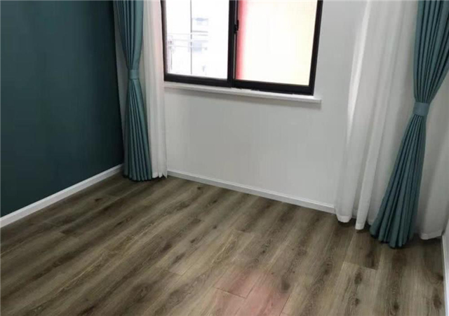 次卧的装修效果和主卧室是一个样的,就是床头的背景墙和餐厅一样是墨绿色的。次卧的家具还没到位,看着空间好像很紧凑,其实也不算很小。